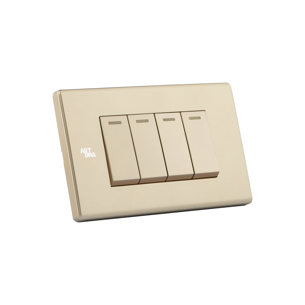 Thiết bị điện ARTDNA, Công tắc đôi 2 chiều C6, Công nghệ, vật liệu GERMANY, Bảo hành kết cấu 12 năm, thương hiệu quốc tế, màu vàng cao cấp