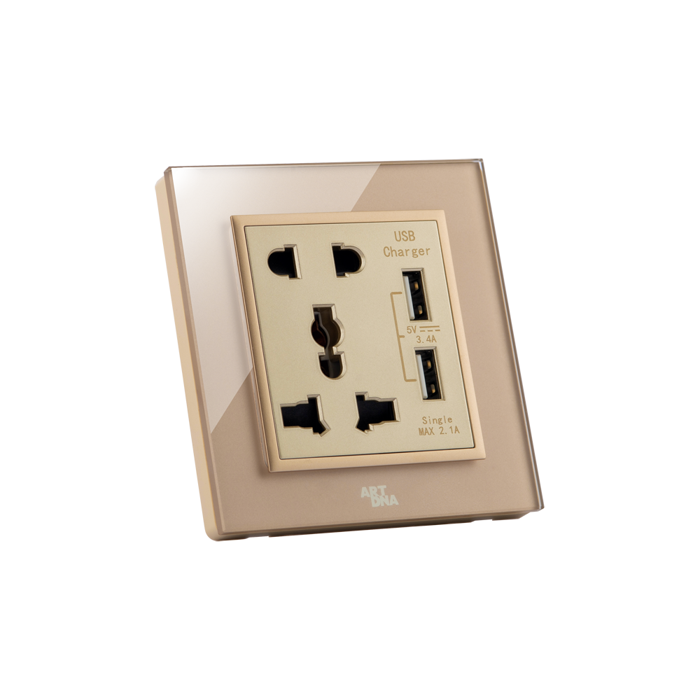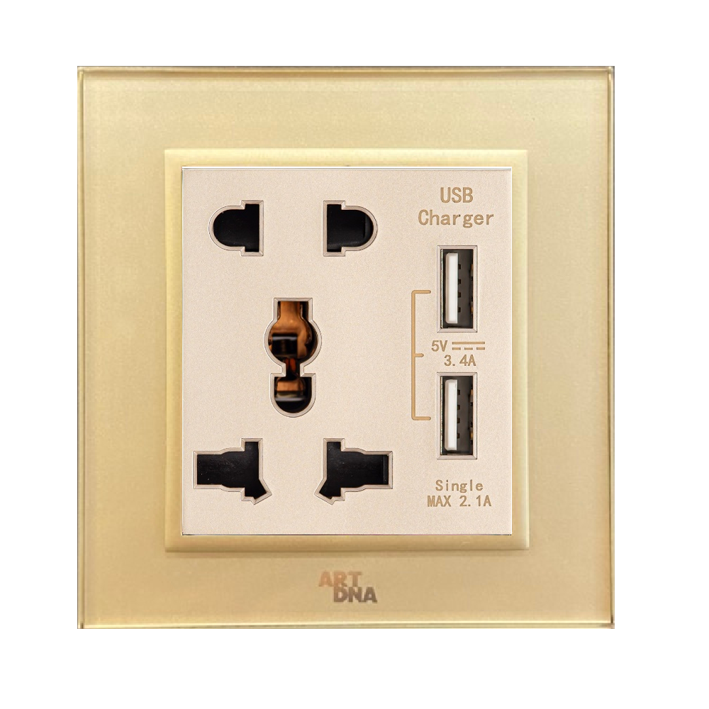 Ổ cắm + USB, A78 Kính vàng